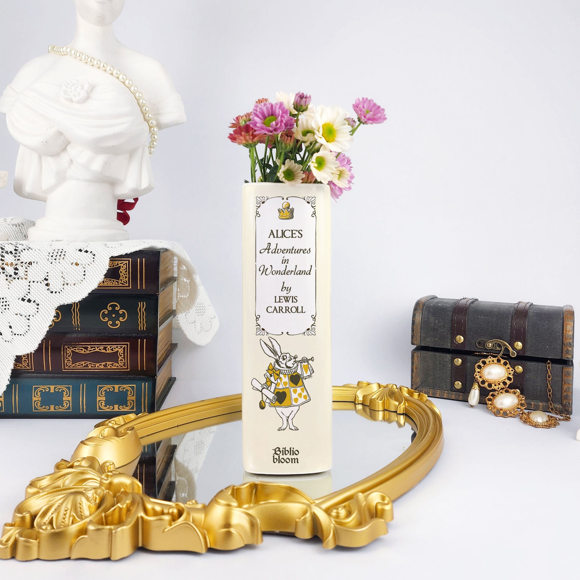 Our book vase is the perfect way to show off your love for books. Inspired by Alice's Adventures in Wonderland - Lewis Carroll book, it’s both charming and unique.