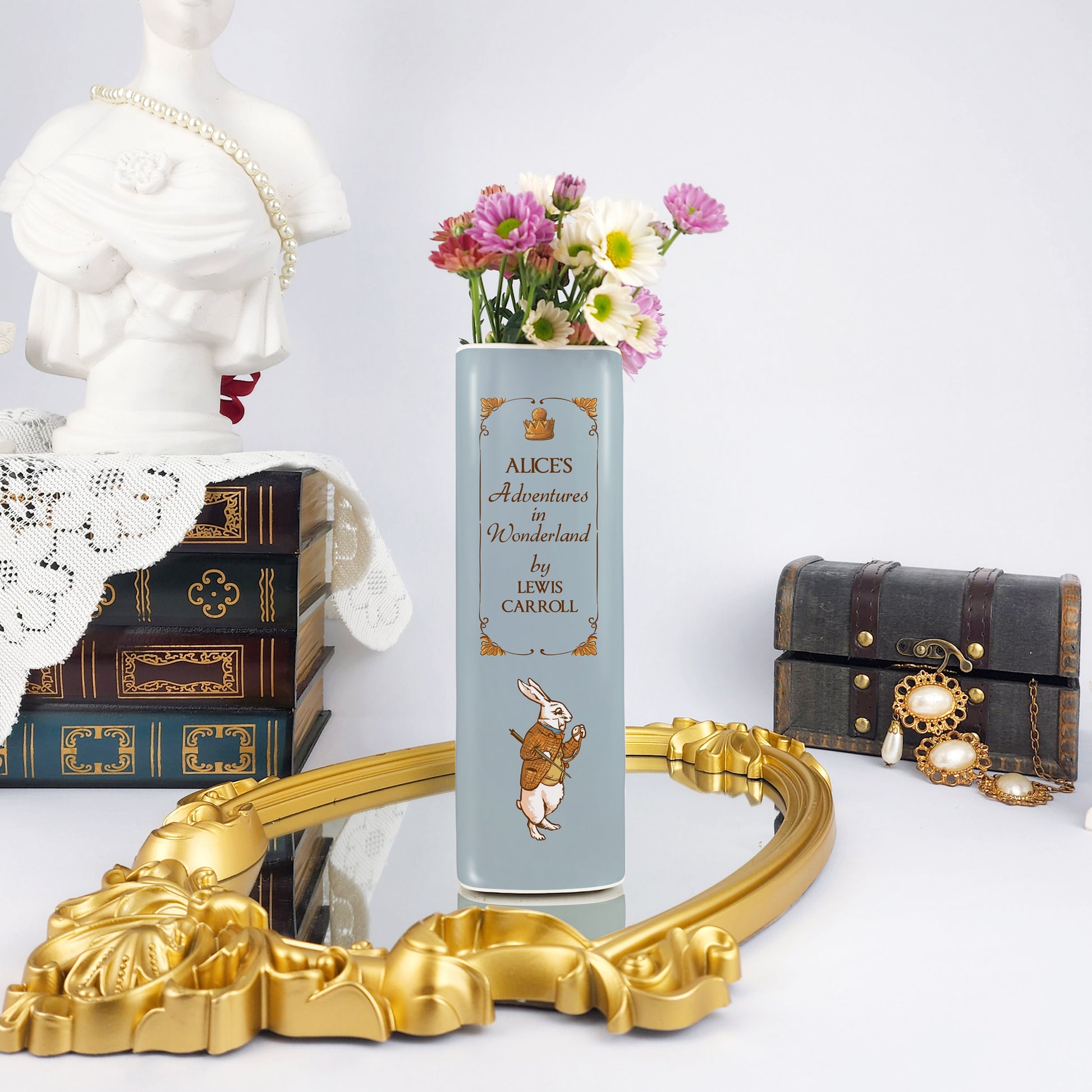 Our book vase is the perfect way to show off your love for books. Inspired by Alice's Adventures in Wonderland - Lewis Carroll book, it’s both charming and unique.