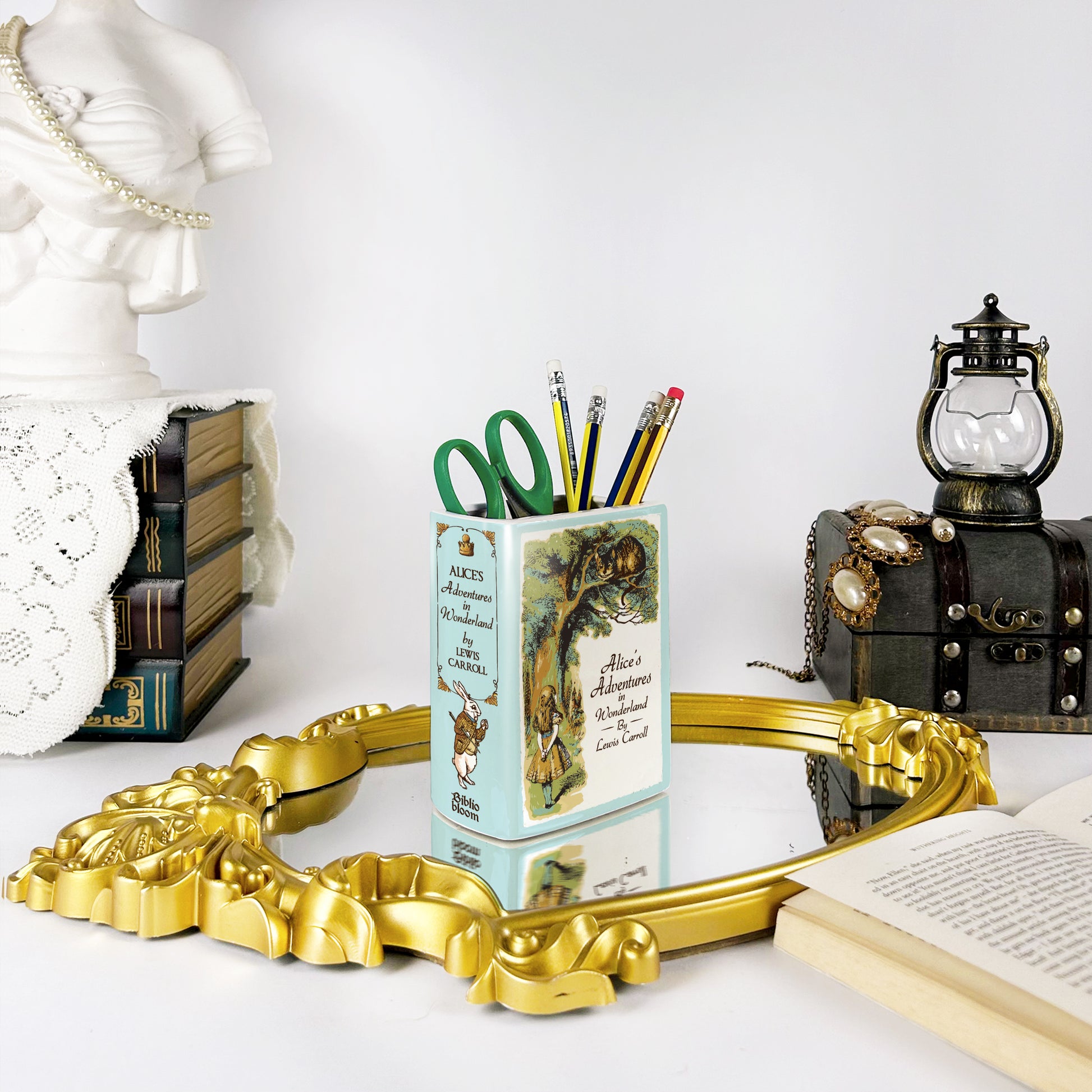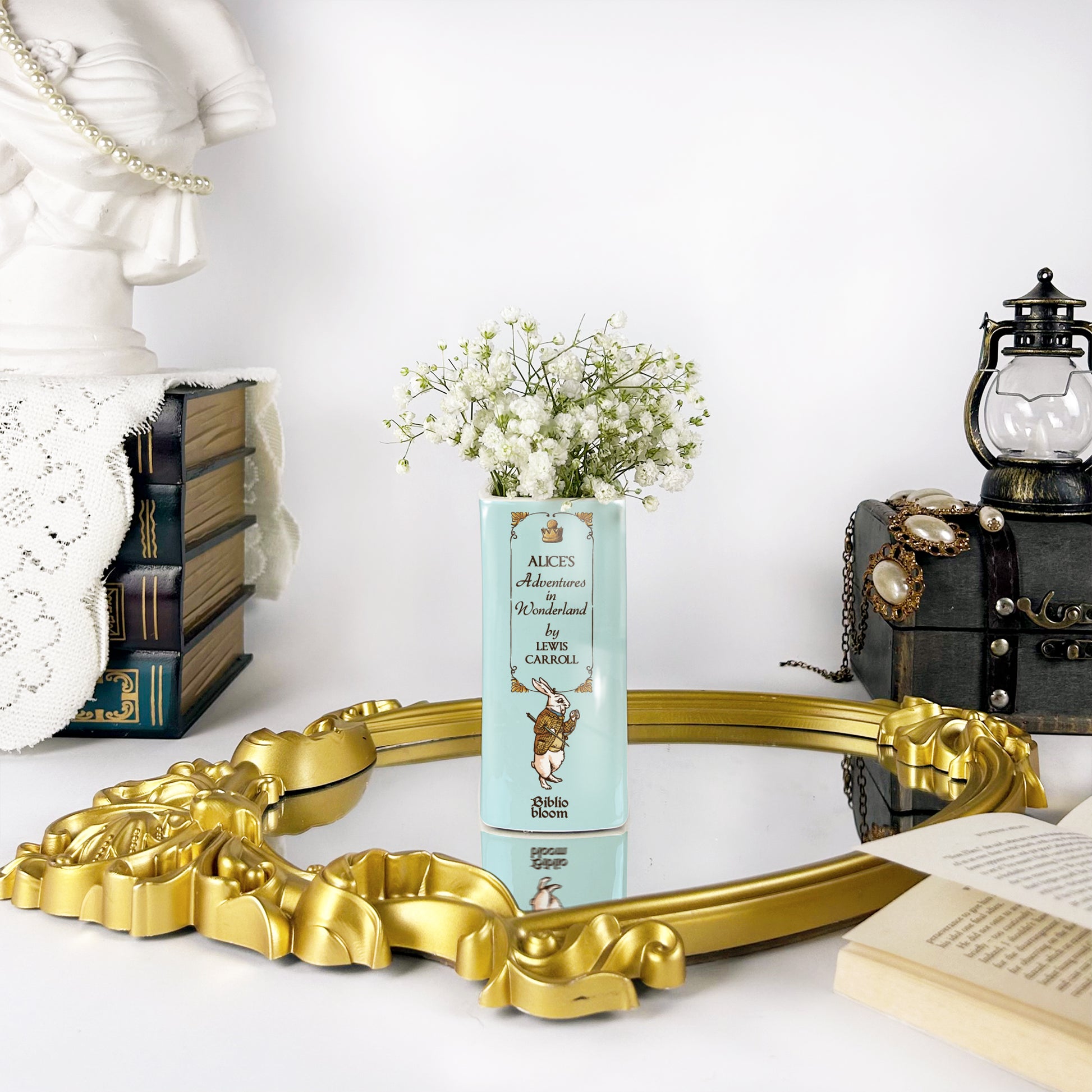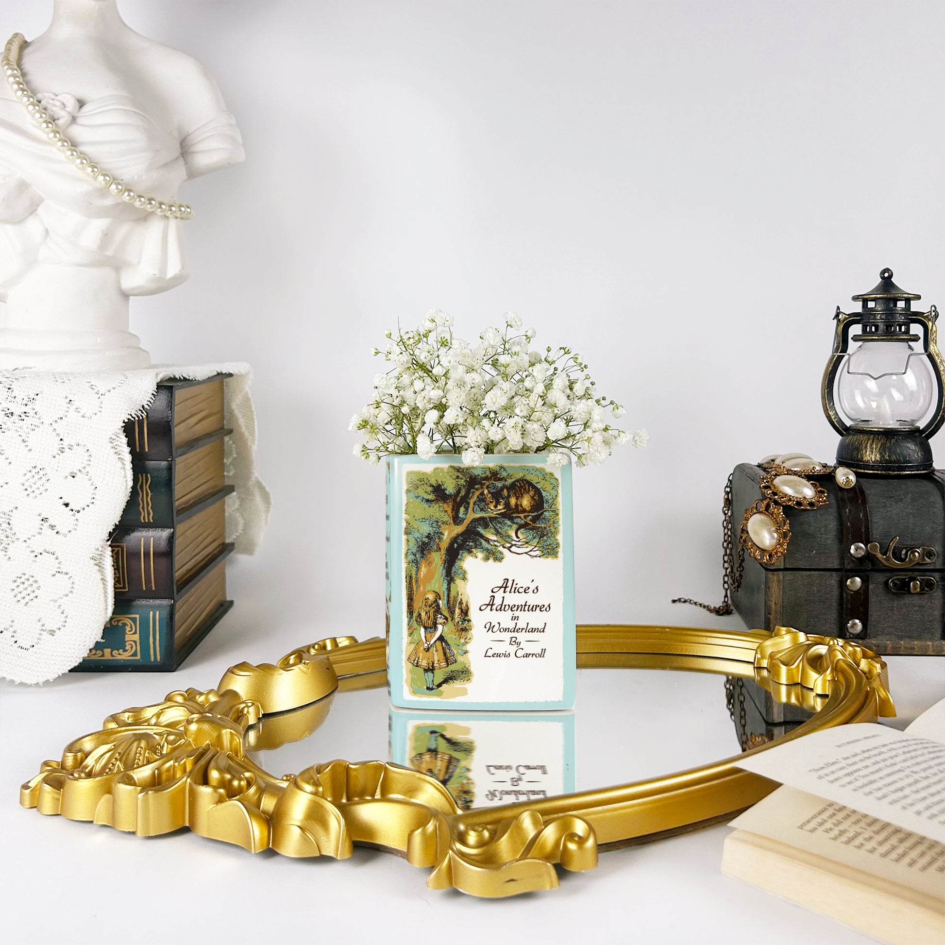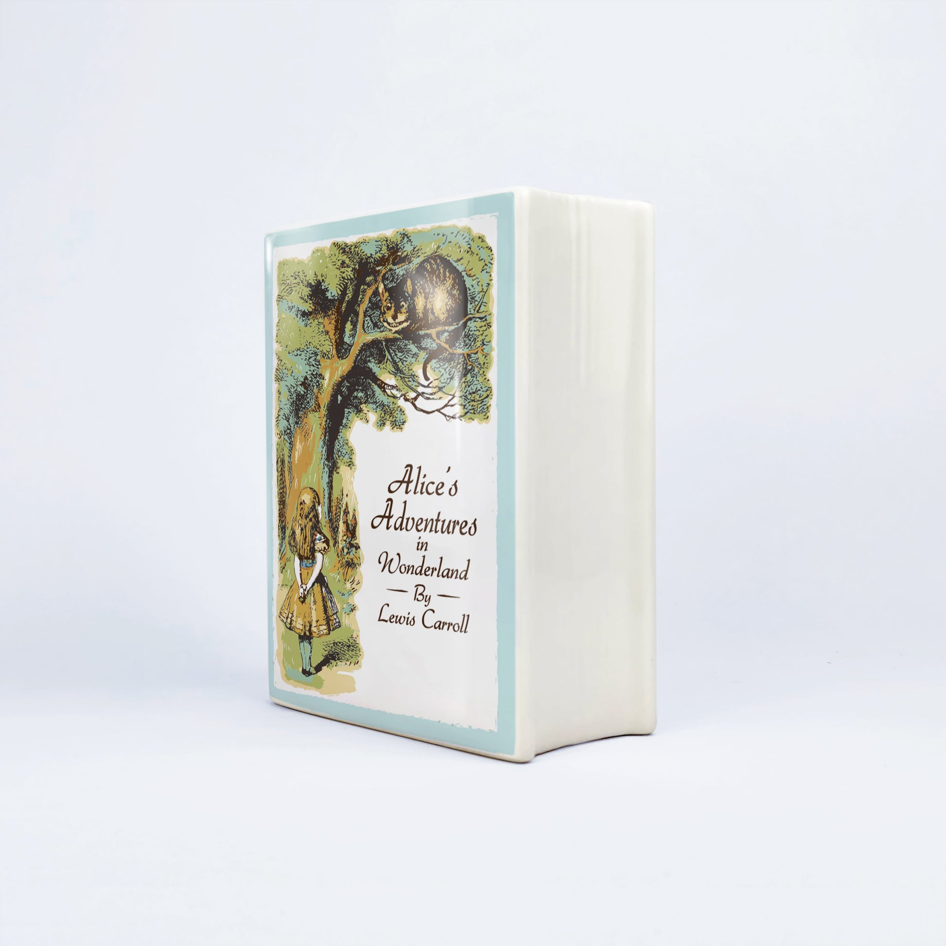 Our ceramic book vase is the perfect way to show off your love for books. Inspired by Alice's Adventures in Wonderland - Novel by Lewis Carroll, it’s both charming and unique.