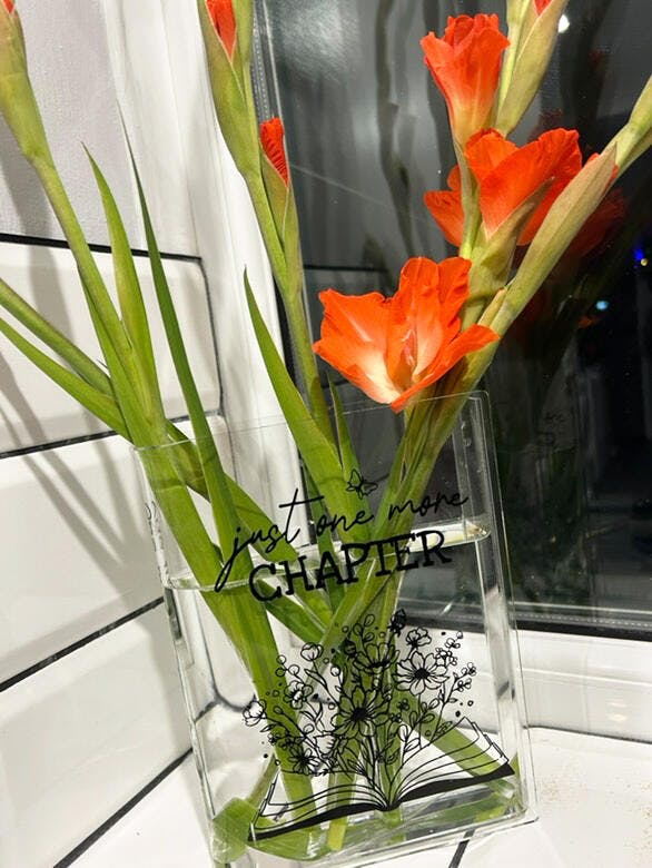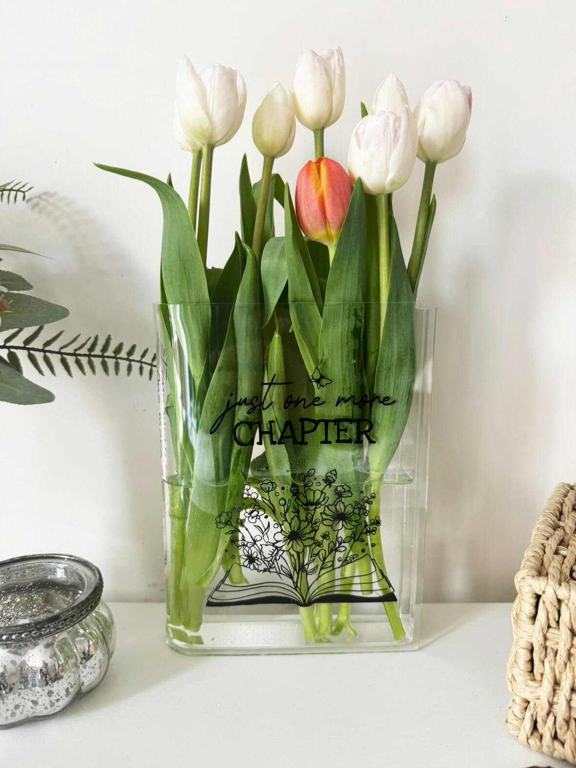 Our book vase is the perfect way to show off your love for books. Inspired by one of the popular sayings of true book lovers "Just one more chapter", it’s both funny and unique.